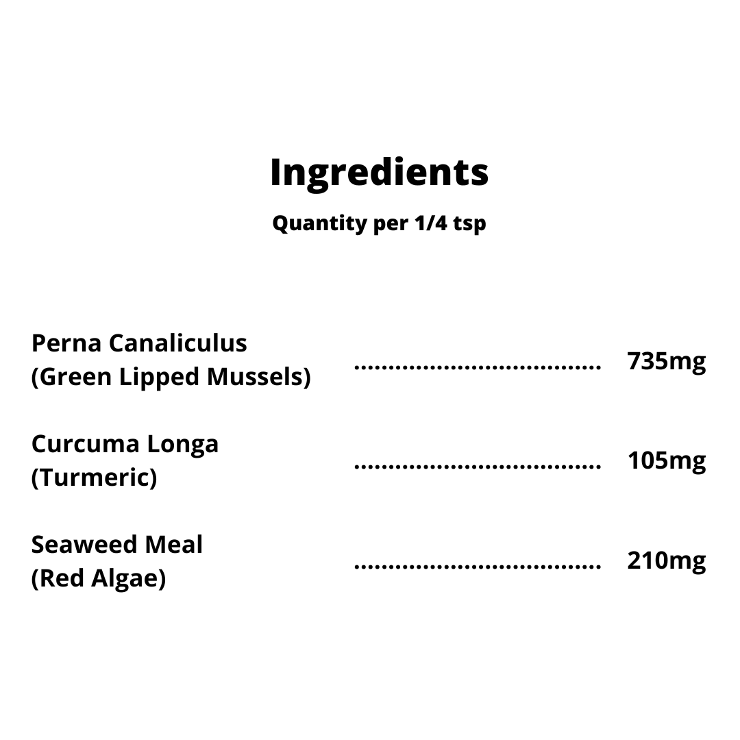Fast-acting and easy to digest, our all-natural formula provides quick relief for dogs experiencing discomfort. Plus with our 100% money-back VIP Guarantee*, there's no risk in giving our product a try. We’ll even buy you a competitor's product if you’re not satisfied. Our Joint Support is a powder you simply sprinkle onto your dog’s food once a day - perfect for kibble or raw diets plus each bag lasts approximately 2 months.